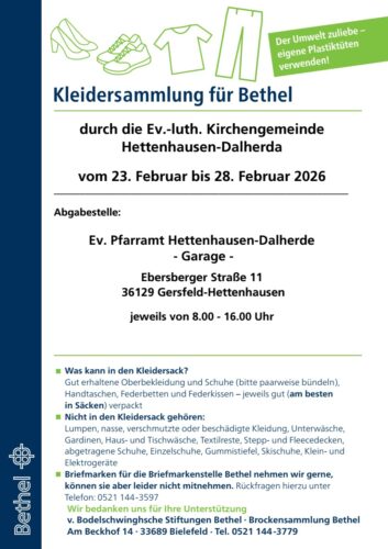 Vom 23. bis 28. Februar 2026 findet bei uns die jährliche Brockensammlung der v. Bodelschwinghschen Stiftung Bethel statt.
