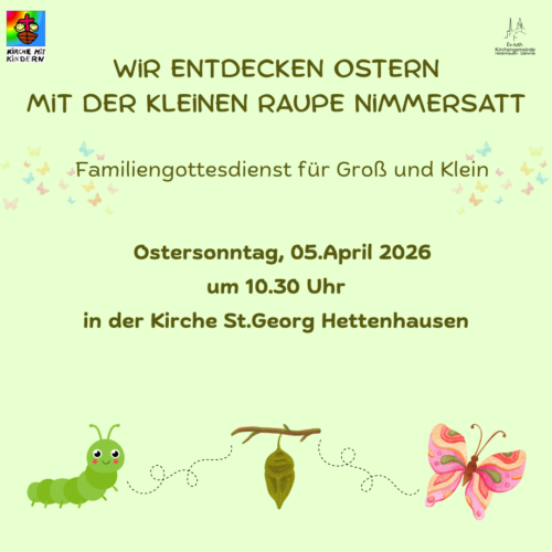 | 10:30 | Kirche St. Georg Hettenhausen | Familiengottesdienst für Groß und Klein | ||