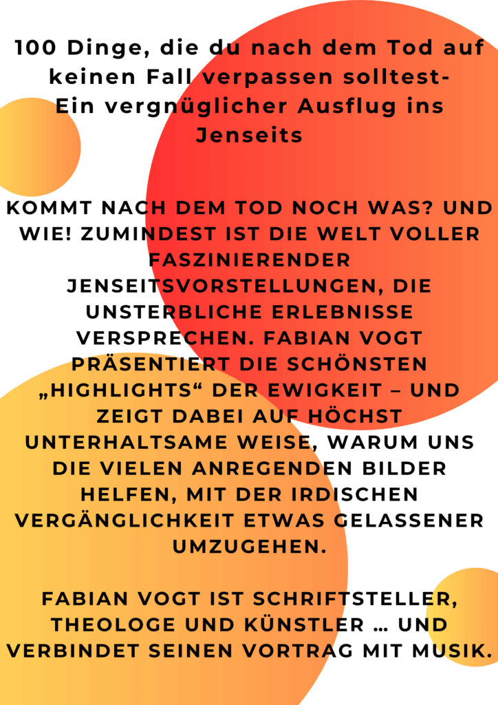 Ein vergnüglicher Vortrag von und mit dem Schriftsteller, Theologen und Künstler Fabian Vogt.