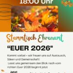 Liebe Engagierte, liebe Interessierte, ich lade euch herzlich zu unserem nächsten Stammtisch Ehrenamt ein! In gemütlicher Atmosphäre möchten wir miteinander ins Gespräch kommen, Ideen teilen und gemeinsam nach vorne blicken. Unter dem Thema „Euer 2026“ wollen wir darüber sprechen, wie wir das Ehrenamt und freiwillige Engagement in unserem...